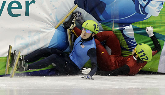 中新网2月21日电 北京时间今天上午,2010温哥华冬奥会短道速滑女子1500米半决赛中,此前夺金呼声很高的中国选手王濛遗憾摔出赛道被判犯规,无缘决赛。