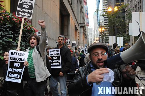 在国际奥委会两天后将在丹麦哥本哈根决定2016年夏季奥运会举办城市之际,“芝加哥不要奥运会”组织29日召集300多人在芝加哥市政府大楼前举行示威游行,反对芝加哥申办奥运会,呼吁政府在改善广大居民的教育、医疗条件方面进行更多的投资。