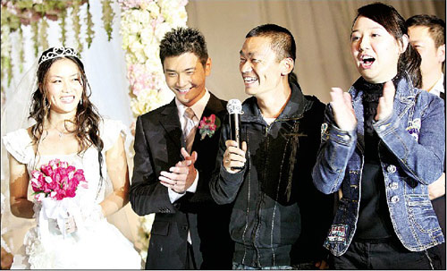 高健、黄玉斌、杨扬、杨凌、王宝强、关凌共同担任邢傲伟和朱樱樱的证婚人。