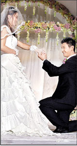 邢傲伟单膝跪地戴婚戒