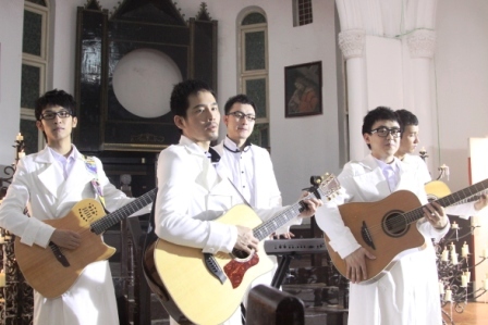 作为今年快男很受关注的原创选手,玉米提、刘心、谭杰希、组合几大原创才子拍短片也被分到一组,他们集体化身“音乐精灵”“我们是封存已久的音乐精灵,来拯救世界。”他们这一组将拍魔幻片,他们统一穿着白色长风衣,一副白马王子的形象,在音乐世界里放歌。