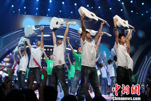 中新网7月10日电 由湖南卫视、天娱传媒联合打造,何炅、汪涵联袂主持的“2010快乐中国 快乐男声”总决赛第一场——12强争先赛,9日晚10点半在湖南卫视首次直播,打响揭幕战。所谓“争先赛”,意味着今晚不会产生淘汰选手,不过这并不影响比赛的精彩程度,因为重新出发12强选手将通过三轮激烈比拼,决定谁将赢得下周淘汰豁免权,谁又将进入“危险区”,濒临淘汰边缘。最终,“牙套小王子”谭杰希一举夺得总决赛首个周冠军,入围全国10强,而Delay组合在最后的PK中不敌赵帆,进入下周比赛危险区,濒临淘汰。此外,在节目现场,倍受观众关注的“快乐天团”也带来了精心准备的精彩歌舞节目,而掌门人金亨熙也根据他们的表现再次淘汰6人。据悉,被正式命名为“8090”的天团成员,将在随后的比赛中进一步精简,待组合成员确定之后,在“快男”6进5比赛中“踢馆”诸强。