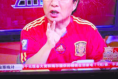 主持人身上的这款西班牙球衣上的LOGO制作得很粗糙,字母排列不整齐,显而易见属于假球衣,而且还属于假球衣中比较劣质的一种。世界杯期间,卖得最火的商品也是各强队的球衣。但对于普通球迷而言,动辄四五百元的正版球衣确实让很多人“望而生畏”。如果再加上印字或者印号码等,一件正版球衣下来,基本要500元以上,这一般还只是上衣的价格。作为央视主持人,肯定不存在没钱买球衣的情况,主持人为何要穿假球衣,目前没有得到对方的任何回应。(华商报)