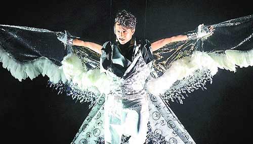 中新网7月19日电 韩庚脱离韩国天团Super Junior单飞,昨天在北京演唱会上化身天使,从巨大的金属壳中“破茧而出”,象征他重新出发,现场采用3D隐形悬浮科技幕打造出虚幻的韩庚共舞,噱头十足。