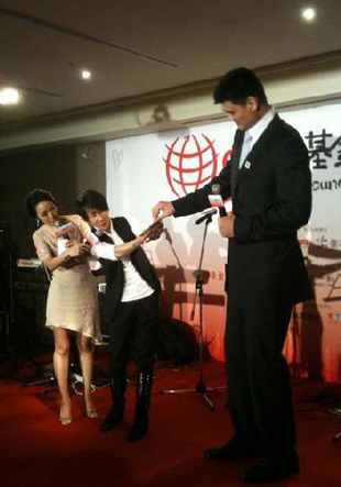 斜肩礼服甜美优雅 与天心同台拼性感(组图)