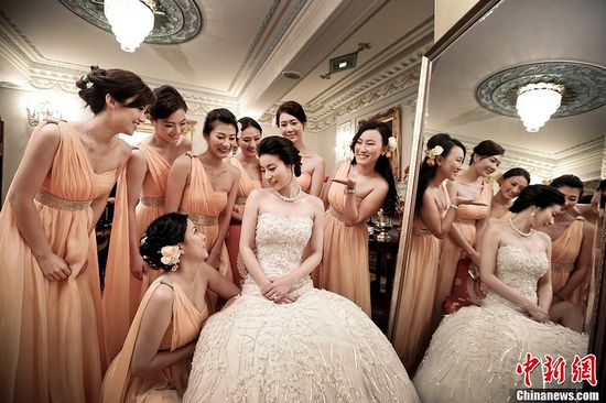 中新网11月9日电 昨日中午,“跳水皇后”郭晶晶与霍震霆之子霍启刚在香港完成注册仪式,成就一段世纪良缘佳话。随后两人一组完婚照曝光,亲密浪漫。其中,郭晶晶身着白婚纱与霍启刚深情对望、吴敏霞率领的伴娘团妩媚美艳、家人心细准备家乡点心等事,都成为当日最美好小细节。