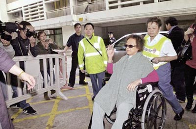 中新网11月28日电 “肥姐”沈殿霞上周六出席好友林凤娥寿宴后因身体不适而急入院接受治疗,昨日肥姐由澳门返港,下机后立即前往玛丽医院接受检查。肥姐来不及装扮,故她被送入玛丽医院时是以真面目示人,连假发也没有戴,只见她脸色蜡黄,头发稀疏,幸好精神不俗,面对记者还挥手打招呼。