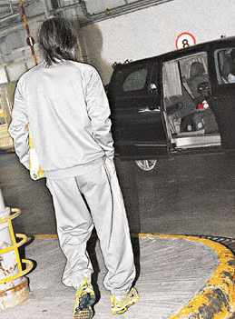 星爷到达拍摄现场后先行下车,但爱犬Chocolate却坚持坐在车厢内。