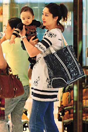 李克勤爱子样子精灵可爱,卢淑仪抱他逛商场十分抢眼。