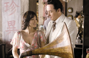 剧照中,发哥身穿风衣,头戴绅士帽, 活像28年前在《上海滩》中饰演的许文强。发哥无论身材与外貌,均与当年无异。至于曾在张艺谋电影《摇啊摇!摇到外婆桥》中饰演歌女的巩俐,这次也重施故伎,以浓浓的女人味诱惑两位男主角。而在另一张剧照中,身穿低胸长裙的她,与因合作而传绯闻的约翰·库萨克深情对望。(王文)