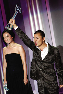 王宝强显然没准备好拿奖,获得第一个奖时发言语无伦次,乱感谢了一通之后仿佛“许三多上身”,边摸着后脑勺边自己问自己:“我还要感谢谁呢?”招牌式的窘像让现场响起一片会心的笑声和掌声。(记者 易哲)