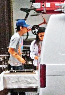 上月30日:女友Vincy低头挑选小饰物,陈冠希体贴地在旁边等候。