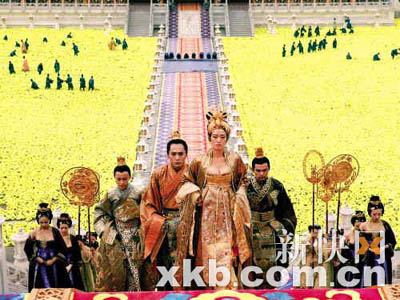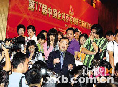 昨日上午11点,第17届金鸡百花电影节新闻发布会在大连的富丽华酒店如期举行,来自全国各地的百余家媒体记者们都齐聚一堂,听电影节组委会关于提名影片规则方面的老调重弹。正当大家都有点昏昏欲睡的时候,一位来自吉林某电视台的记者突然提出了一个问题:“为什么让大众评委观摩的影片由最初决定的10部变成了9部,独独缺了《满城尽带黄金甲》(以下简称《黄金甲》)?”台下的记者们闻言顿时议论纷纷,而台上的电影节领导们也都表现得十分意外,由此引发了电影节开幕最大的话题——《黄金甲》为何退赛了?