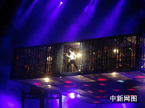 和郭富城一起亮相的,还有刚获吉尼斯世界记录、被称为“梦幻魔方”的四百五十度旋转舞台,这个全球演唱会中最大的巨型旋转舞台耗资三千余万元,重达四十吨,与普通舞台不同的是,该旋转舞台除能够平面旋转和升降外,还可反转、横滚。昨晚演唱会在炫动的图案和梦幻般的组合灯光中,郭富城与旋转舞台一起狂野反转,飚歌于惊险刺激之中,使全场歌迷为之惊喜连连。