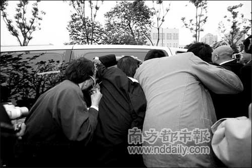 到底有多少双手想拽住范冰冰?想冲出人群拜祭恩师成了一项艰难任务。