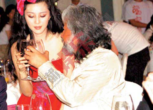 2006年,范冰冰身穿芭比娃娃装,坐在张纪中大腿上。
