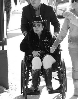 好莱坞“玉婆”伊丽莎白·泰勒19日坐着轮椅来到一家修道院。“玉婆”头戴牛仔帽,鼻梁上架着一副太阳镜,鲜红的唇膏把脸色衬托得更加苍白,与昔日摇滚天王迈克尔·杰克逊惯常的装扮如出一辙。