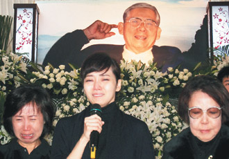侯佩岑(中)父亲侯世宏昨天公祭,侯佩岑代表家属追忆父亲生平,忍不住伤心落泪。