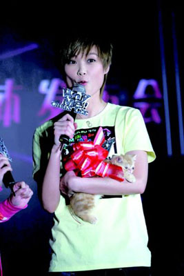 身穿2009年纽约时装周最新款秋装、惊喜地收下一只纯品加菲猫的生日礼物、黄晓明为其献花、阿信一上场就与其打趣地“大打出手” ……昨天下午,“李宇春2009WHY ME广州演唱会”媒体发布会现场双喜临门的“寿星”李宇春可以说是天下最幸福的人了。