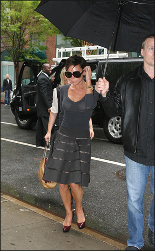 图文:维多利亚一身精致皮装出门 十分抢眼