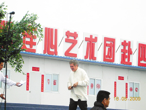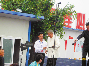 虽然本次“心连心”艺术团在明星阵容上创下了空前的纪录,但是剧组在筹备过程中却是对成本极尽节约。昨日早上6点半,记者提前来到演出现场,硕大一个舞台就搭建在板房区的一个空地上,舞台背景也是就地取材,由几间贴着大红对联的板房组成,但看着特别的温暖。