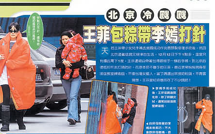 中新网12月21日电 王菲下周二(26日)会在北京为“嫣然天使基金”举行筹款晚宴,她近日已低调返港购买衣服和筹备录音工作。凡事亲力亲为的王菲,虽然时间紧迫,上周二(12日)仍亲自带女儿李嫣到北京一间私家医院打贵价防疫针,保母全程护小主人,表现十分细心。
