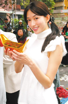 中新网2月27日电 香港媒体报道,林志玲昨日在台湾出席新年团拜,对于导演蔡明亮指她与台湾首富郭台铭相拥共舞令人恶心,林志玲只说:“每个人都有评论的权利。”谈到最近当选性幻想十大女星之首,她说:“我的性幻想是未来的另一半,郭台铭和言承旭都不是。”