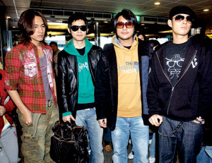 当天F4的外形都有些变化:言承旭的头发越留越长,仔仔却剪了一头短发,朱孝天的脸形消瘦了一点,吴建豪上周在马来西亚演唱会上摔伤腿,拄着拐杖缓慢入关。