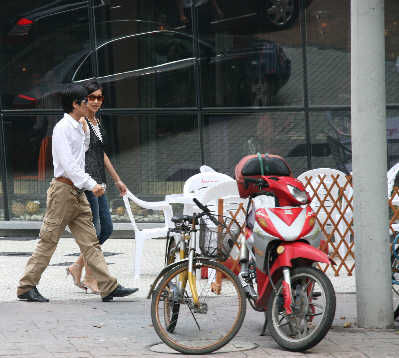 车到了餐厅门口,杨恭如先下了车,当时杨子正在打电话,所以他命令助手为杨恭如先开门,非常贴心。而杨恭如昨天以短发造型出现,并且戴着墨镜。下车后她不避嫌地与杨子并排走,杨子的保镖紧随两人身后。这个场景以前经常出现在杨子和黄圣依甜蜜逛街时,只是这次的女主角换成了杨恭如。两人边走边聊,杨恭如笑得很开心,记者尾随其后时听到杨子不断在讲笑话来取悦杨恭如。进入餐厅后,两人找了一个角落的二人桌,坐下来喝下午茶。大约一个多小时后,两人一起离开。