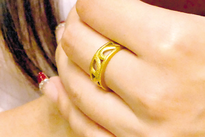 中指戒指闪闪发亮