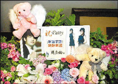 周杰伦与侯佩岑分手后话题从未降温,昨天,侯佩岑的第二本书《字言字语》发行。记者会前有传周董会用化名订花致意,结果,周杰伦却大方用本名送花到场,花丛中更不避讳地将两人的照片摆放在花篮最前方的迎面处。为此,侯佩岑感动地哭着说:“谢谢好朋友。”