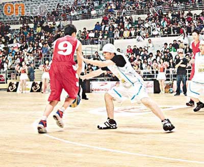 面对上海东方队的小巨人,周杰伦打起来捉襟见肘,投篮屡屡不中,更是出现体力不支的现象。下半场,周杰伦要求改打他更擅长的三对三,果然他的表现脱胎换骨,手风愈射愈顺最后取得7分,带领明星队在20分钟内以36比32险胜对手。