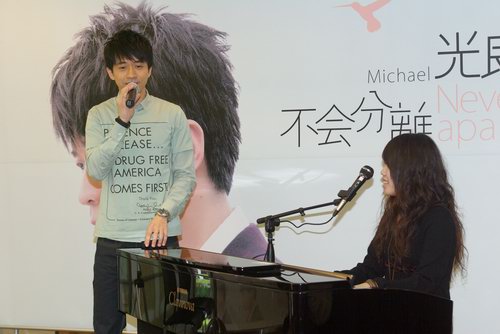 中新网11月28日电 新专辑《不会分离》发片两周,光良却因为海外邀约不断而变成空中飞人,昨天(11/24)终于有机会在台湾和歌迷举行音乐见面会,身为YAMAHA数字钢琴代言人的光良,除了用自弹自唱的方式演唱经典创作,并分享自己学钢琴的心路历程,而等待光良已久的歌迷送上客家人喜庆时才会制作的客家麻糬,光良则搞笑地和歌迷一人一口,以示与歌迷“不会分离”。