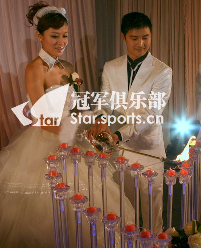 图文:田亮与叶一茜共饮交杯酒 新娘向公婆敬茶