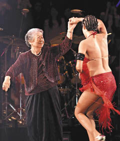 另一波惊喜出现在他唱《迷迭香》时,舞蹈老师阿宏突然请坐在台下的周董外婆上台,原来外婆是国标舞高手,80多岁宝刀未老,在杰伦的带动下,与女舞者即席表演了一段,技惊四座,香港传媒以“令观众拍烂手掌”形容现场的热烈。