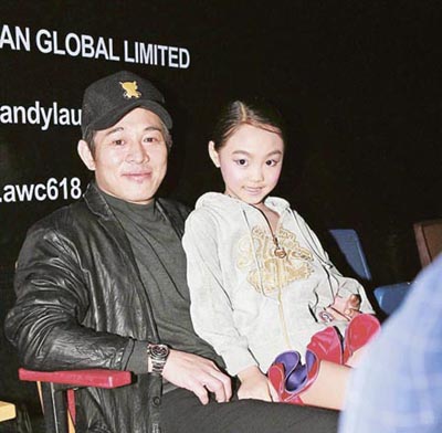 据香港明报报道,华仔前晚(12月24日)在个唱表演拉丁舞时,多了一名舞艺精湛的7岁小妹妹,当华仔介绍这位小妹妹是李连杰的女儿Jane Li后,令全场起哄。阿Jane事后回到台下李连杰身旁,华仔即对李连杰说:“杰哥,多谢你囡囡今晚跟我表演,她真的跳得很好,今晚你来支持,我十分感动。”华仔更叫小Jane等他再年轻些,到时再一起跳舞。