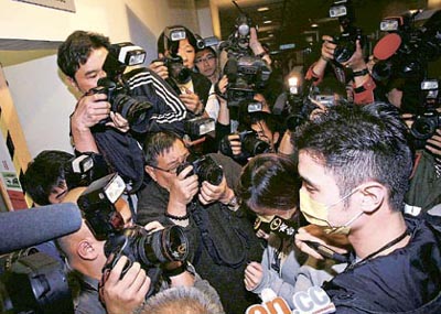欣宜则于7时许再折返医院探妈咪,现场聚集了数十名记者,故医院方面也派出4个保安为她开路。欣宜戴上口罩,几经辛苦才能冲过人墙入病房,她并没有接受访问。