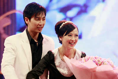 翁虹偕夫婿刘伦浩领取了“健康活力家庭”奖。去年喜得贵子的两人,看起来仍像热恋时一般。这对父母极爱“献宝”,不但在节目录制时放送一段全球首播的宝宝DV,翁虹还在后台向众人展示手机中的宝宝照片。最近工作忙碌的翁虹抱怨:“我忙到连为家人煮一顿饭都成了奢侈的事情。”她表示为了照顾家庭,将考虑暂时息影:“现在一出门工作就会想她,出来两天就想回家。短期内我只会接一些不会离家很久的工作,暂时没有想要拍戏。”她还透露目前最大的目标就是养好身体,再生第二胎。