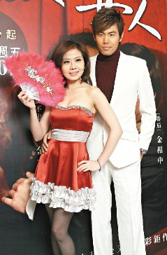 小潘潘和余秉谚(右)代言韩剧,性感装扮成外遇男女。