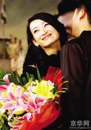 图为一名影迷给秦海璐献花。记者 王铮 摄