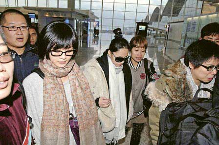 中新网2月25日电,据香港明报报道,昨午5时15分,Twins在数名助手陪同下抵达机场,准备飞往北京。锺欣桐(阿娇)束起长发,虽然戴上太阳眼镜,但仍难以遮掩倦容;而她的拍檔阿Sa状态同样欠佳,一对“熊猫眼”呈现,甚至比阿娇更为憔悴。