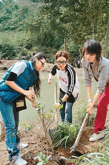 图文:郑秀文、梁咏琪探访老挝 在渔塘边植树