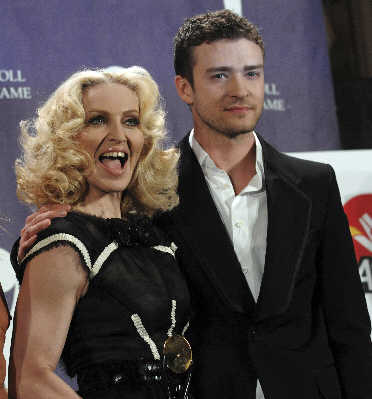 刚刚参与了麦当娜新专辑制作的歌手贾斯汀·廷伯莱克发表了一番热情洋溢的演说,将所有的赞誉都送给了这位流行乐女王。“这个世界到处都有麦当娜的超级粉丝,我曾经还约会过她们中的一些人。”廷伯莱克显然指的是他的前女友布兰妮,“但这个世界上只有一个麦当娜。”随后,廷伯莱克主动“爆料”,讲了一件趣事:“一天,我正在制作麦当娜的新专辑时,感觉身体很不舒服。她告诉我,‘你需要的只是注射一针维他命B12。’我说最好还是去看看医生,可这时她已经冲到我面前,手里拿着一支针管,对我说‘拉下来’。”廷伯莱克有些不好意思地说,“我当然照做了,然后,她看了看我说,‘尺寸很不错’。那真是我生命中最棒的一天。”麦当娜在一边笑着说道:“他说的基本是真的。不过,我可没说‘拉下来’,我说的是‘脱下你的裤子’。”