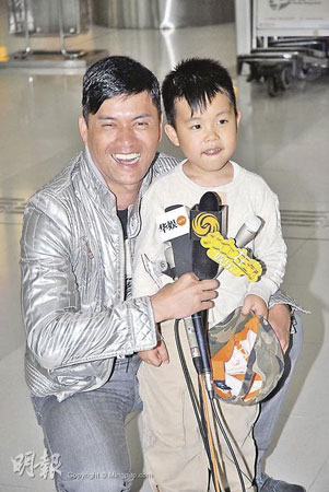 吕良伟与儿子。香港明报图。