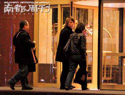 “摇滚诗人”伍佰日前来京,为将于四月中旬举行的“你是我的花朵”演唱会造势。或许为挽回日渐低落的人气,伍佰这次全新造型亮相,一头挑染的金色长发看上去年轻许多。当天所有活动结束后,伍佰一行乘车到“沸腾鱼乡”吃饭。当时正值北京交通高峰时段,车开到离饭店三百多米的地方停下,伍佰先跳下了车,他一边穿外套,一边就要穿过马路。跟在伍佰身后的还有一位身材高挑、面容姣好的三十岁左右女士,手挽一个显眼大花包。在走到“沸腾鱼乡”三百多米远的距离里,马路上来往的行人很多,但没有人认出伍佰来。伍佰这顿晚饭足足用了两个多小时,走出饭店时,他仍然表情严肃,不苟言笑。随后在酒店门口,花包女神秘失踪,只留下那个显眼花包在伍佰女助手的手里……