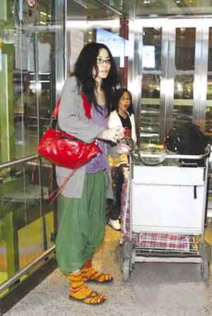 天后王菲所到之处,必定拥趸无数。上月29日晚上,王菲母女回到北京,由于不熟机场新大楼路线,在三号航站楼里迷失。当晚王菲出现在机场出口,穿着毛袜夹人字拖,一条绿色灯笼裤,素装简颜,这身行头只有穿在王菲身上才会被称作时尚。当接机的人看到王菲的时候,充满了热情,并且有人开始尖叫,接着就是掏手机,按快门……闪光灯不停闪着,王菲没有闪躲,也没有对着别人微笑,只是向着离自己最近的一部电梯走去。而身经百战的窦靖童则心领神会快步奔向电梯,在最后一秒按住“下行键”,招呼推着行李的母亲上电梯。