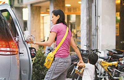 中新网4月10日电 台湾女艺人陈孝萱带着2岁6个月大的儿子铁弟,到某大楼上画画课,虽说陈孝萱与制作人詹仁雄离婚后,母兼父职,常抱着14公斤的铁弟到处走,但当天男司机还是帮陈孝萱把铁弟抱下车。
