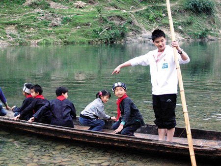 上周末,“跳水王子”田亮随同“加油!2008———东方卫视·希望工程快乐体育行动”节目组一起,来到贵州省三都县打鱼乡,作为“明星课外辅导员”与小学生互动。在与学生们接触的过程中,田亮更加感受到了即将为人父的责任。