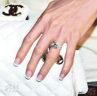 曾馨莹左手钻戒抢眼。香港明报图。