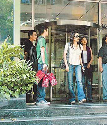 昨天中午,台湾媒体记者目击她乘LEXUS房车到民生东路上的“红豆食府”,原以为单独用餐,但是下车时发现她搂着林熙蕾,2人都戴大墨镜、穿白衣搭牛仔裤,沿路说说笑笑进餐厅。据悉,2人交谈几乎全程使用英语。
